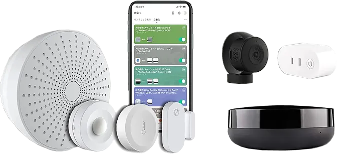 AuBee Homeは本格的スマートホームがお手軽に実現でき、赤外線リモコンだけでなく、一般のAC電源機器の遠隔操作とマルチスクリーンフルHD監視カメラが一度に揃います